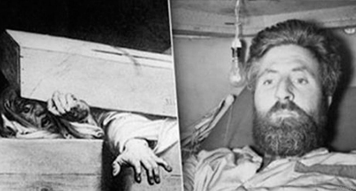 В 1937 году 19-летний Анджело Хейс попал в аварию, и все решили, что он погиб. Только у страхового агента были сомнения насчет смерти молодого мотоциклиста. Спустя два дня после похорон тело молодого человека было эксгумировано. Парень оказался живым. Оказалось, что он впал в кому — что и помогло ему пережить жуткое испытание. Для тела не требовалось много кислорода. После этого случая он стал французской знаменитостью и даже изобрел специальный гроб, оснащенный радиопередатчиком, запасом еды, библиотекой и химическим туалетом на тот случай, если кто-то повторит его судьбу.