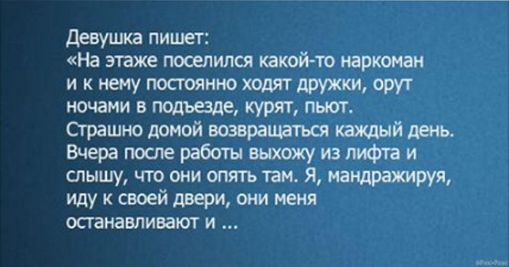»Недавний статистический опрос выявил следующую закономерность касательно страхов мужчин и женщин на первом свидании после онлайн-знакомств: женщина опасается встретить маньяка, а мужчина – толстуху!»